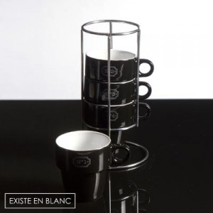 4 Mugs sur Rack noir et blanc